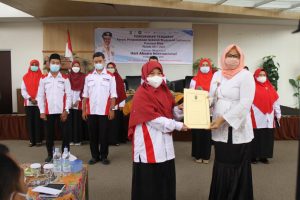 Selain membuka dan memberi sambutan Rahima Erna juga mengukuhkan peserta yang hadir secara virtual Mewakili Gubernur Riau.